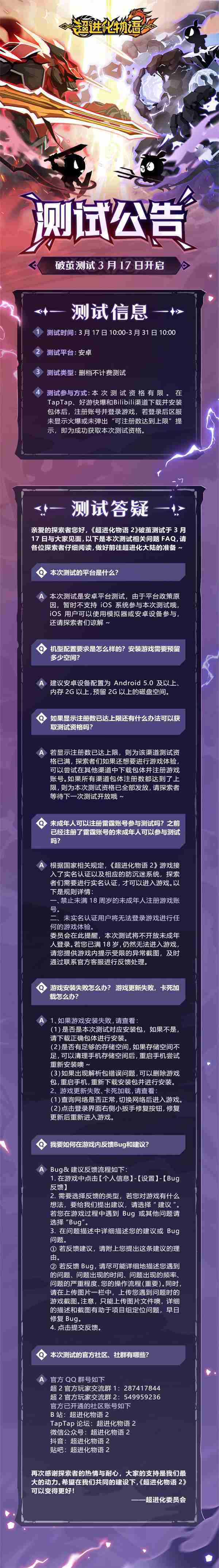 《超进化物语2》首次限号不计费删档测试——「破茧测试」将于3月17日开启,,,随我们确认测试细节,,,,明天迈出踏上超进化大陆的第一步吧!!!